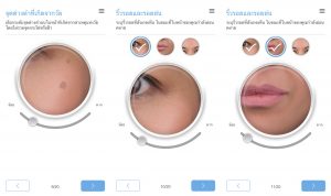 ขั้นตอนต่อมาจะเข้าสู่เมนูหลัก เริ่มต้นการประเมินผิว จากนั้นก็กรอกข้อมูล ชื่อ อายุ เพศ เชื้อชาติ สถานที่ที่คุณอาศัยอยู่, การโดนแดดวันนึงกี่ชั่วโมง ,สภาพผิว ,การแพ้สาร AHA ,จุดด่างดำ ,ริ้วรอยต่างๆ